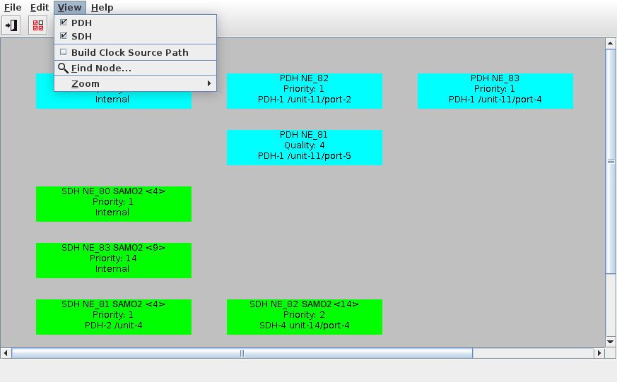 PDH/SDH | Displays the PDH/SDH clock synchronization tree or clock source path. Note: - Changing these parameters will cause a recalculation of the clock distribution tree adding or removing a node type. - It is not possible to disable both PDH and SDH. - If you enable SDH, an error message will be issued for nodes that do not provide SDH clock synchronization. |