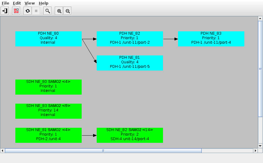 Build Clock Source Path | Finds the clock sources of a node. The Synchronization tree is build back to the root clock source for every selected NE. Note: - This menu is applicable only if one specific NE is selected from the Select NEs dialog, e.g. NE_172.31.68.81. - The dialog images above show sample outputs when a specific NE is selected and the “Build Clock Source Path” menu item is selected/not selected. - In case of Build Clock Source Path menu item not selected, the map shows only the nodes of the selected NE. - In case of Build Clock Source Path menu item selected, the map shows all the nodes of the selected NE as well as the nodes’ parent clock sources. - The clock distribution path is build with the time source information of the nodes and the corresponding sections. |