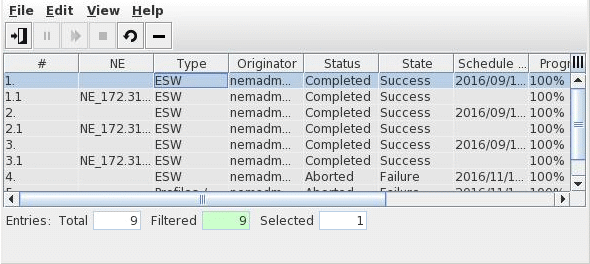 A task consists of one or several sub-tasks, each dealing with a single NE. While a task is still pending, no sub-tasks are shown. After execution, the sub-tasks also appear in the list.