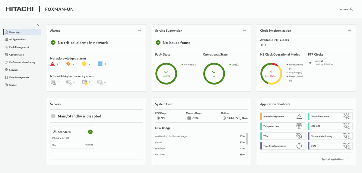 − Alarm Management with map views (Alarms, Section, NE) and the legacy applications: