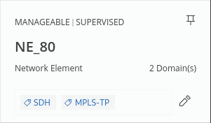 For any selected item in an application (“app”), except system events, alarms, and tasks, one or several tags can be added. Adding tags can ease the individual assignment of objects to a specific subject. The tags are added in the “Add Tag” field of the details panel on the right hand side of the Web UI dialogs. Example for an NE with two tags added; the tags are colored blue:
