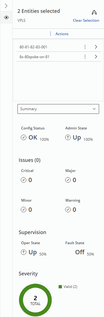 Multiple Entities Details – visible when multiple entities of similar type are selected. In the header information about number of entities selected is presented; below the list of selected entities is visible. The user has also action to deselect all entities available.