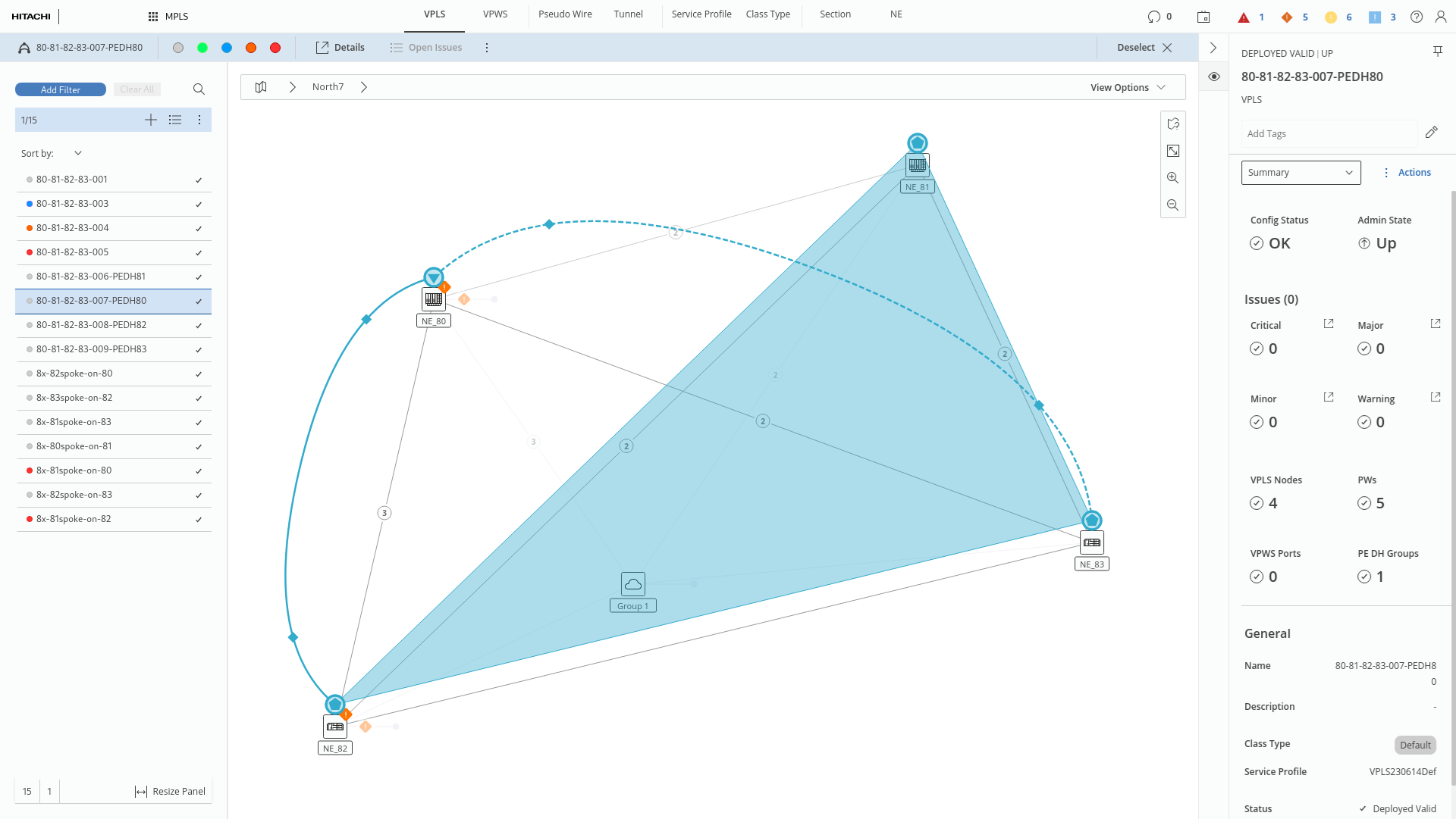 The main view is strictly combined with the entity browser and the details panel – it allows the user to visualize any object selected from the entity browser. Some objects (network elements and sections) can be additionally selected directly from the map, resulting in providing their details in the details panel.