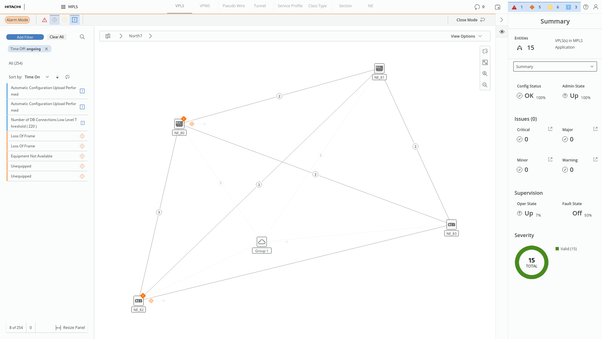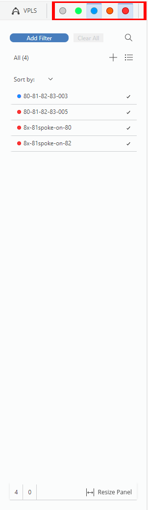 Alarm filters in alarm mode (marked red)
