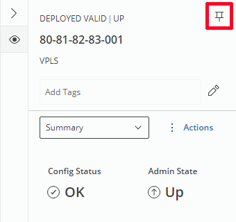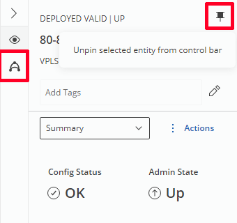 The User can pin any details panel and get back to it on demand without need to reselect in the entity browser. To pin an element, the user can: