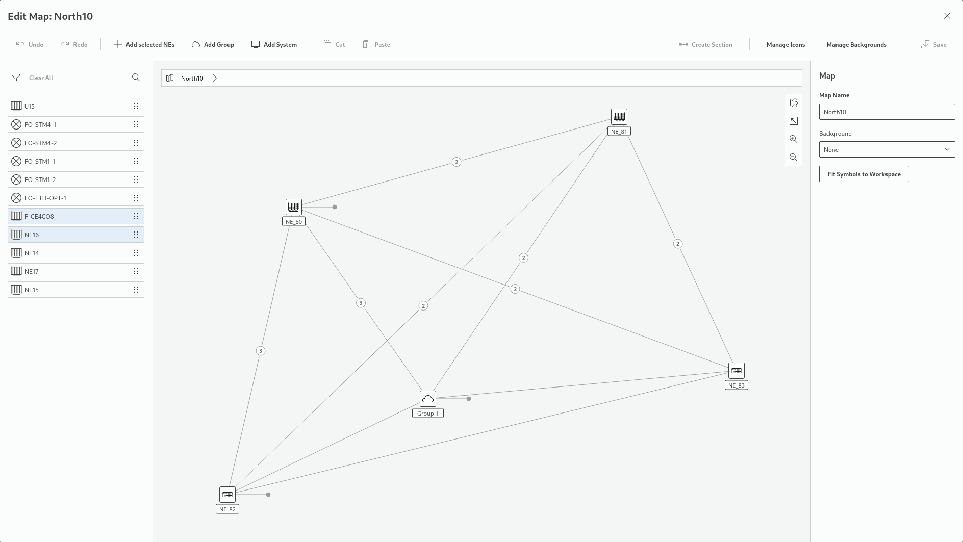 Map manager while editing a map (example)