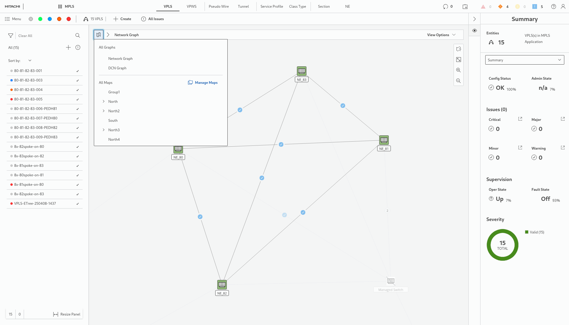 Through the map selector bar, the user can change the map or topology that is visualized. To do that, the user can click the map button or breadcrumbs chevron and select a desired visualization from the dropdown.
