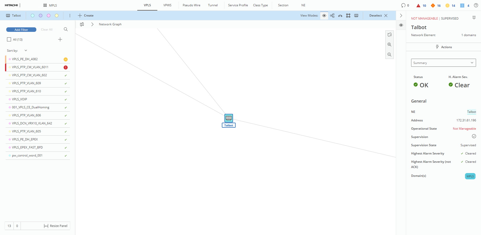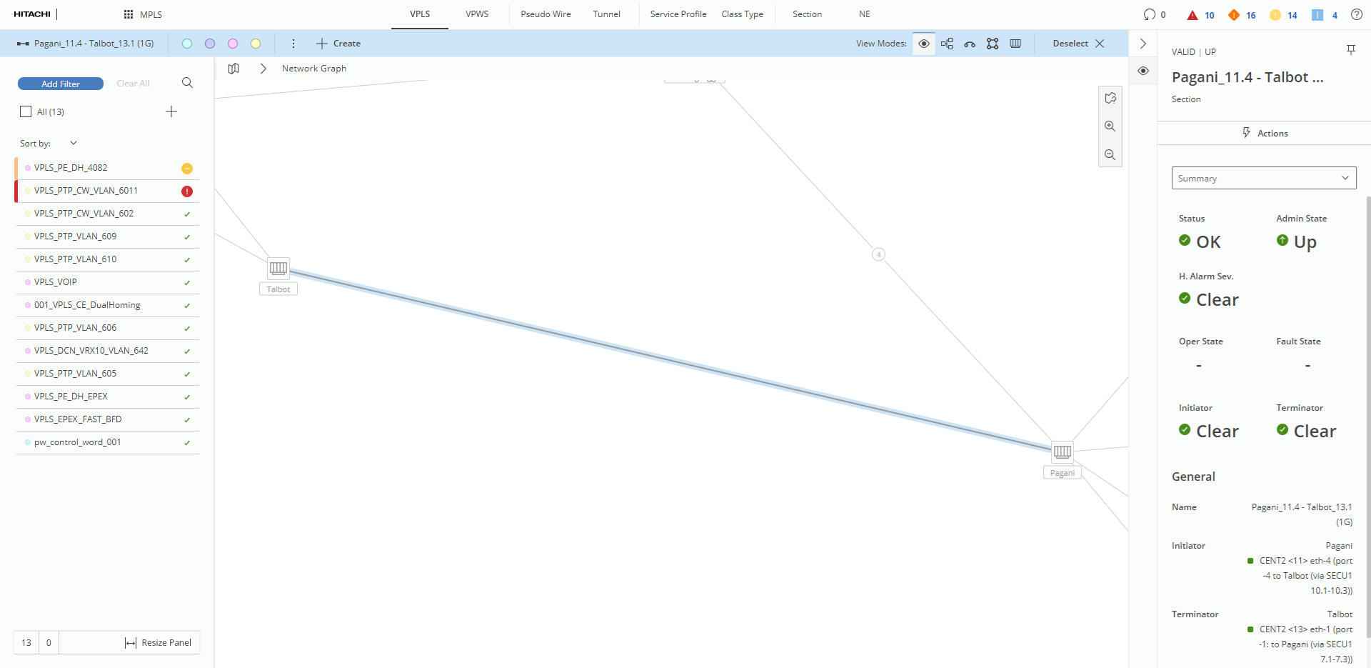As network elements and sections are visible by default, selection of Network Elements or sections is visualized by highlighted states of them on map – indicated by blue colors.
