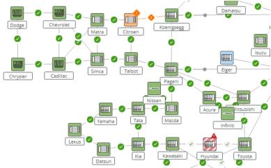 The network monitoring map is displayed in all tabs except the ‘Overview’ tab. It shows the network elements and the sections according to their aggregated performance state and validity. See example in the screenshot below.