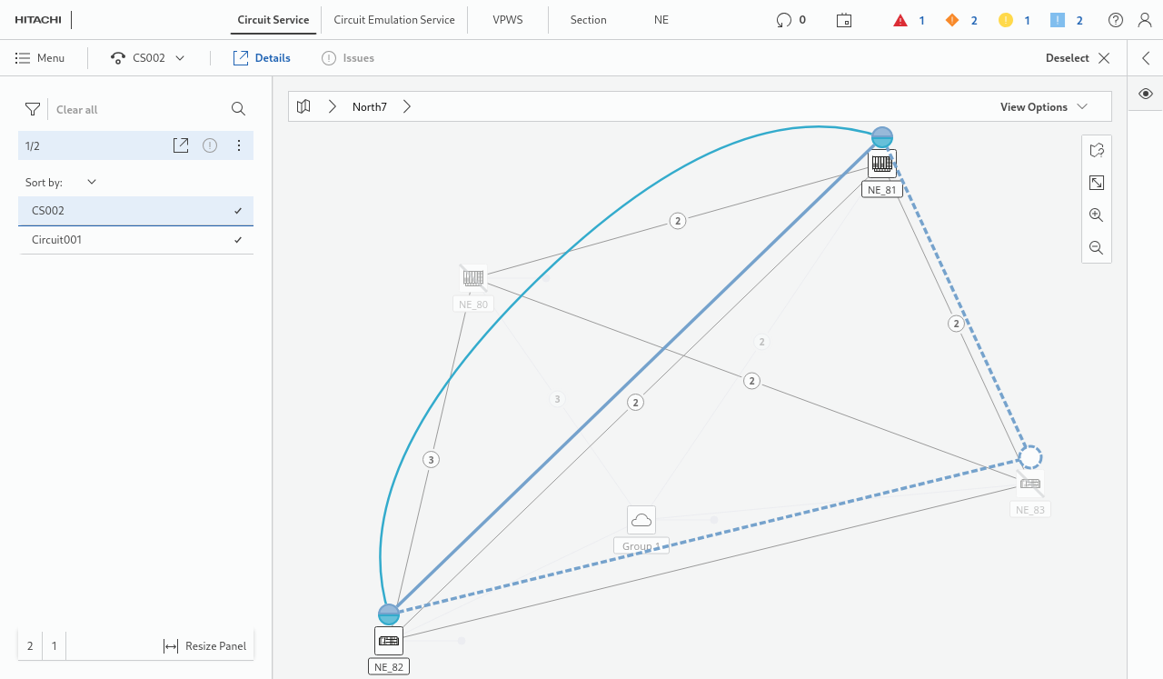 This view shows TDM circuits involved in CE services. It provides information on ports and cross connections used by the service in the TDM area.