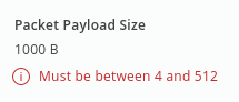 The calculated Packet Payload Size must be in range from 4 to 512 Bytes. Payload size is a result of multiplication of Timeslots Per Frame and Frames Per Packet values.