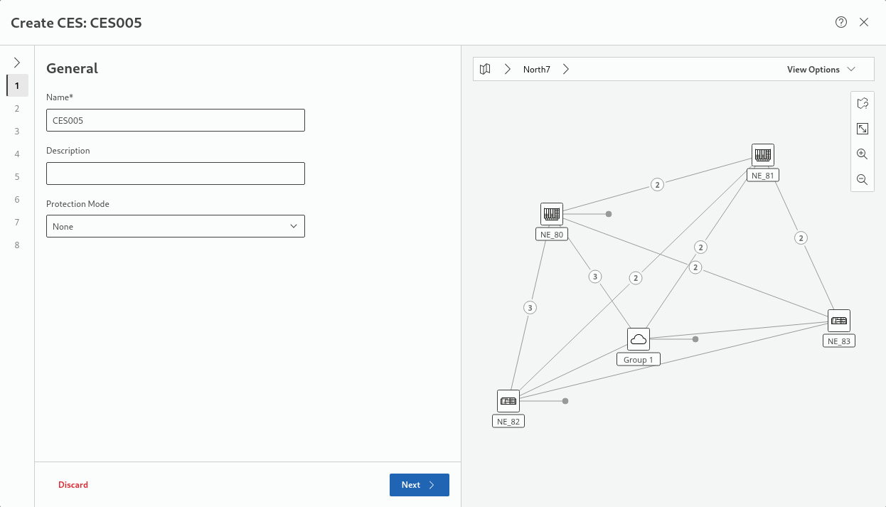 • The “Create CES” wizard dialog window appears in front of the CEM: