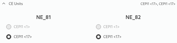 − CE units selection; the user can see a list of available CE units on the selected NEs: