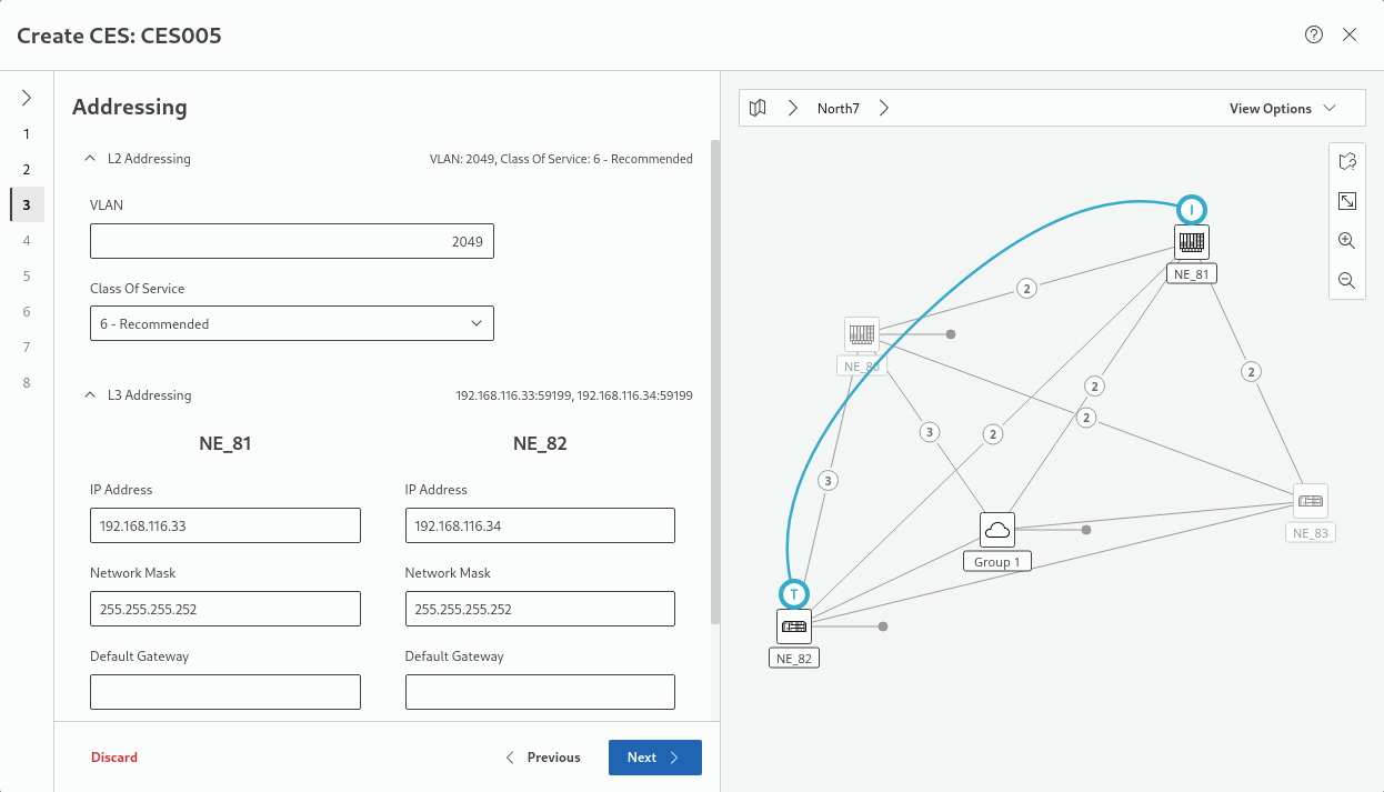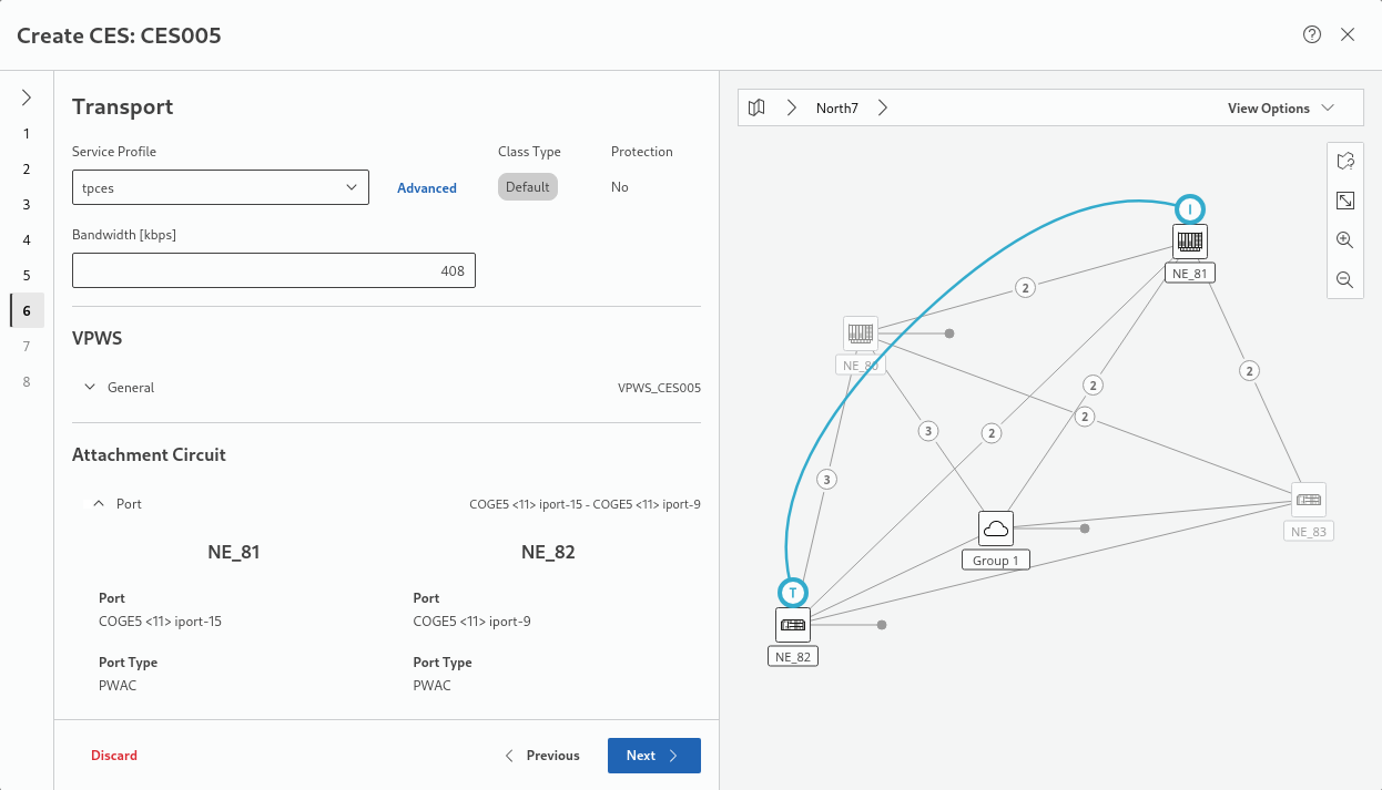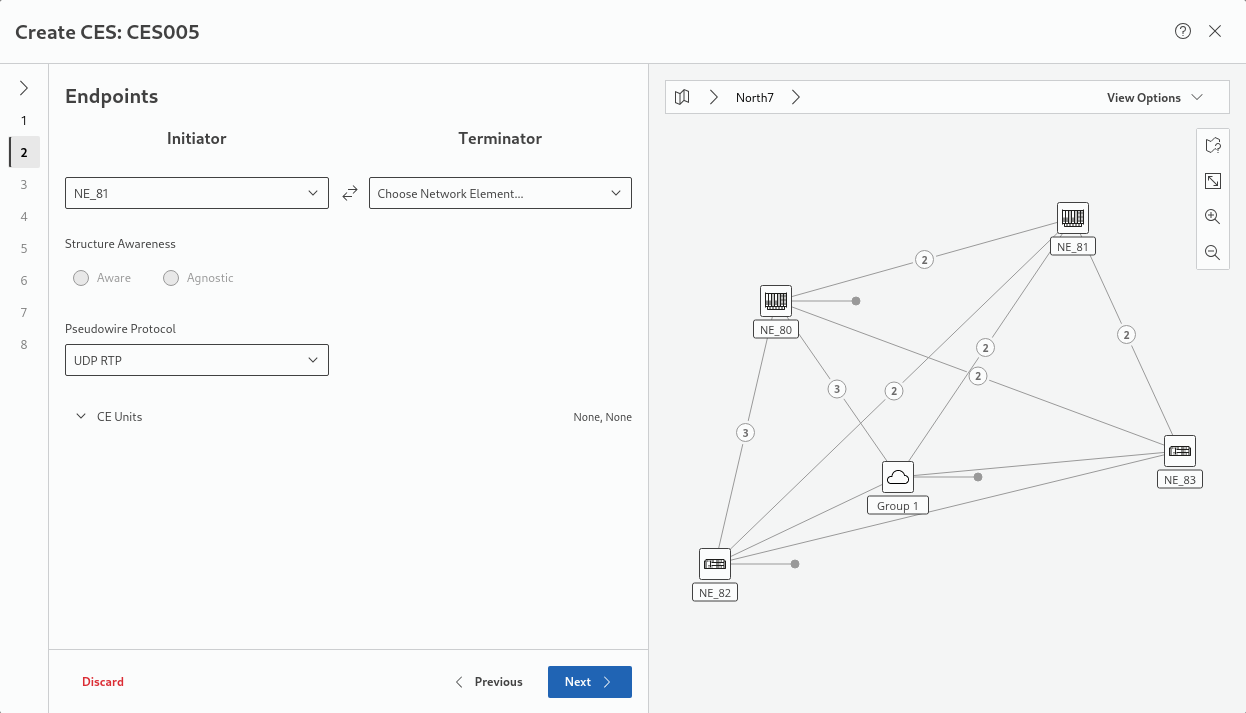 After Initiator and Terminator NEs are chosen, the wizard is automatically selecting the first applicable CE unit. If other units are available, you can select one of these if required.