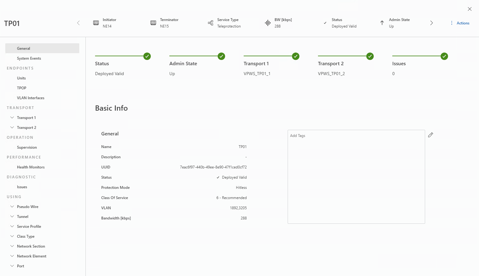 • Status information about Transport entities and tunnel entities