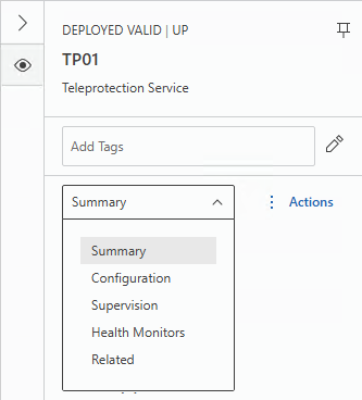 An existing Teleprotection service, when selected from the table or in the map, provides Summary information in the right panel, such as